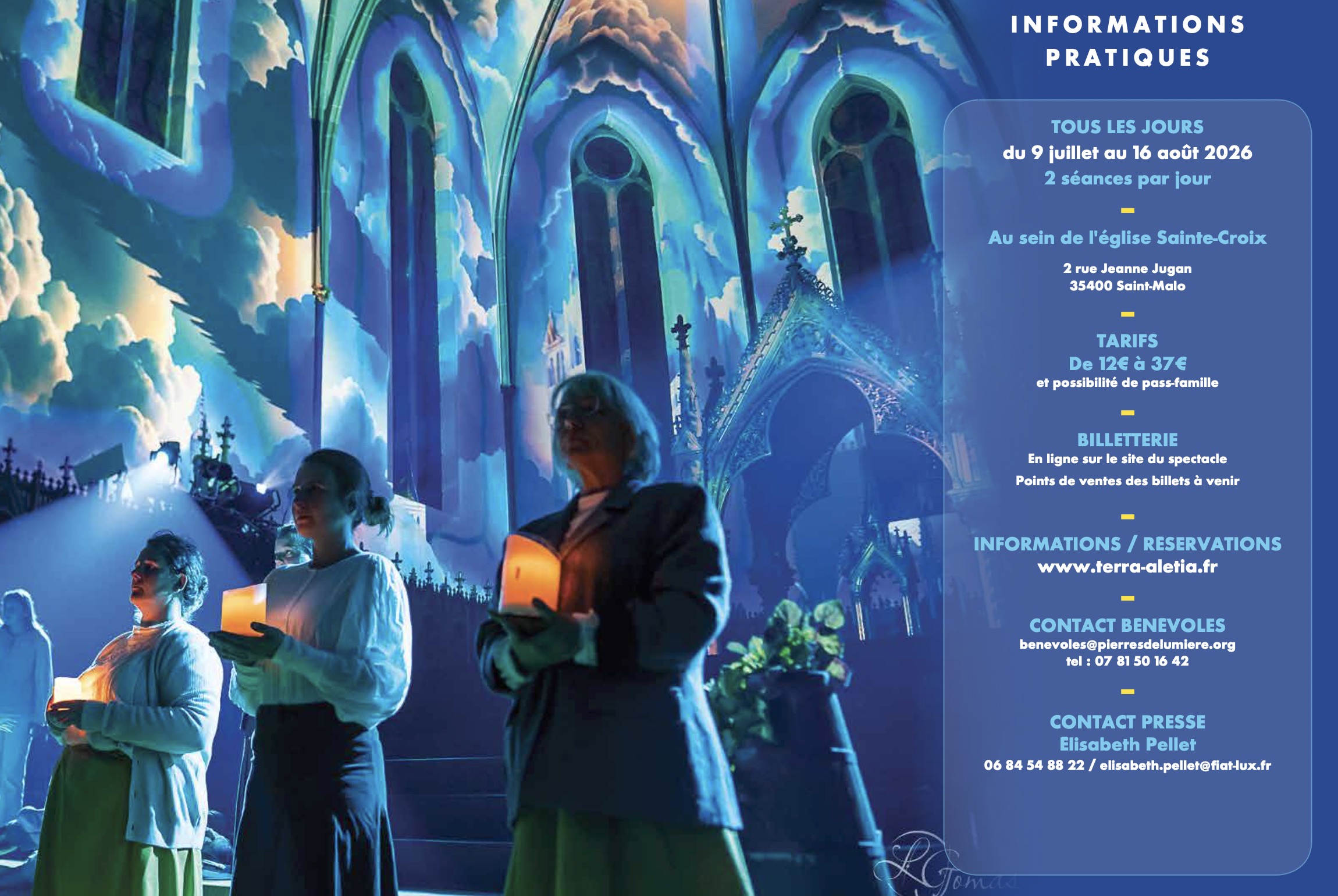 Un grand spectacle immersif arrive cet été dans l’église Sainte-Croix du 9 juillet au 16 août 2026 ; en partenariat avec la paroisse Notre-Dame d’Alet et la municipalité de Saint-Malo.