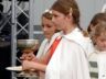 A 10h30, le Père Hervé a accueilli aux portes de la grande tente, Fabienne et Viviane, deux jeunes femmes qui ont fait à cette occasion leur entrée en catéchuménat. Après avoir répondu à plusieurs questions, elles se sont avancées avec la procession d’entre tandis que le chant « Jubilez criez de joie » retentissait sous la tente.